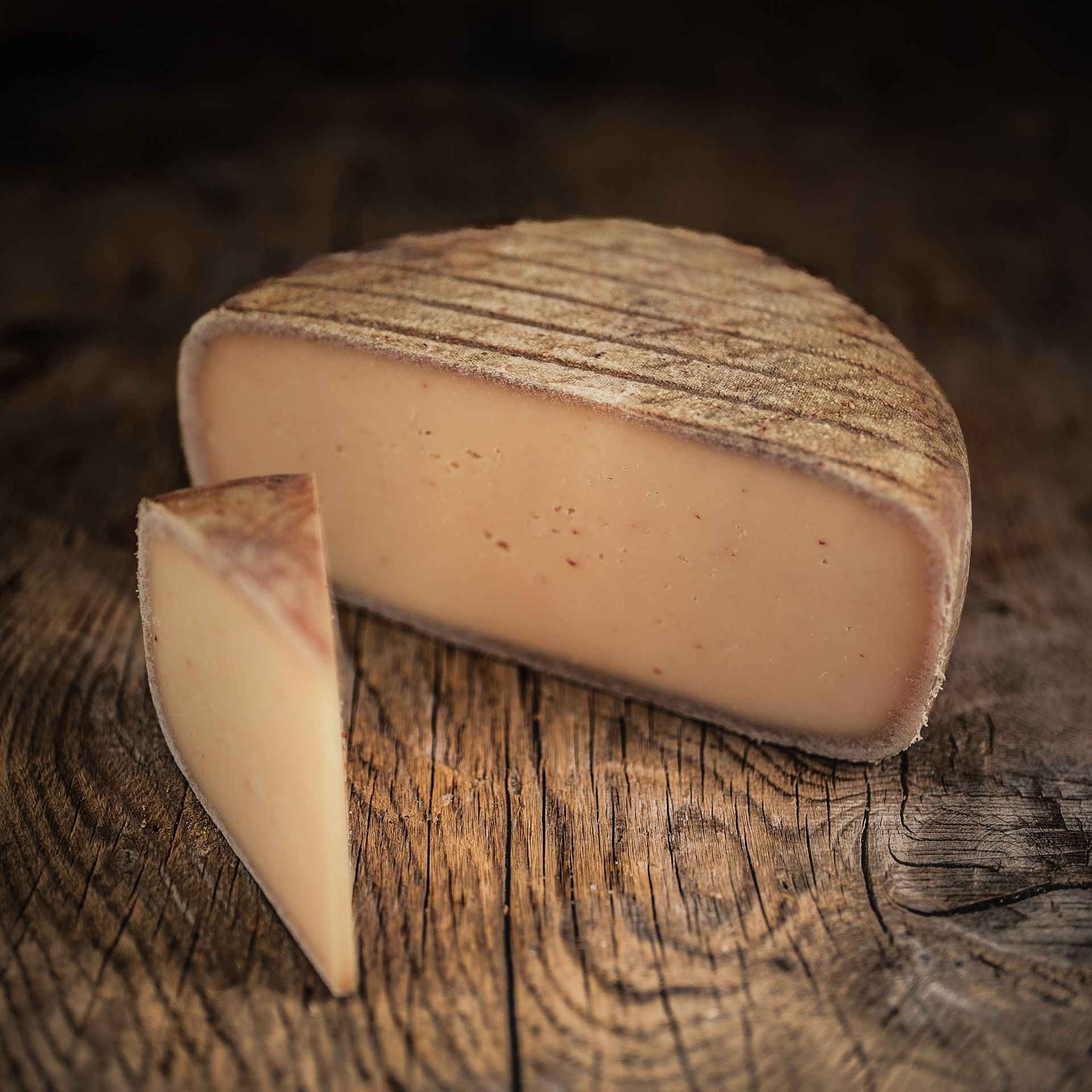 La tomme au Piment d’Espelette est un fromage artisanal produit dans la Vallée d’Ossau au cœur du Béarn. Ce fromage au lait pasteurisé de brebis est fabriqué avec une incorporation de piment directement dans la cuve, puis affiné pendant au moins trois mois, soigné/frotté à la purée de piment d’Espelette AOP, emblème du Pays Basque. Sa croûte orangée et sa pâte souple révèlent des arômes lactiques doux, enrichis par des notes fruitées, grillées et une chaleur épicée subtile. Le piment ne domine pas, mais accompagne harmonieusement la douceur du lait de brebis. Ce fromage se déguste idéalement avec un vin rouge léger et fruité du Sud-Ouest, comme un Irouléguy ou un Béarn, ou même un rosé sec, qui souligne ses arômes sans les écraser.